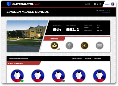 EliteGamingLIVE is a competitive video gaming league comprised of middle school and high school teams.